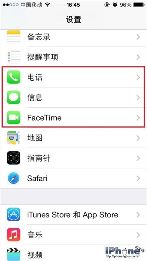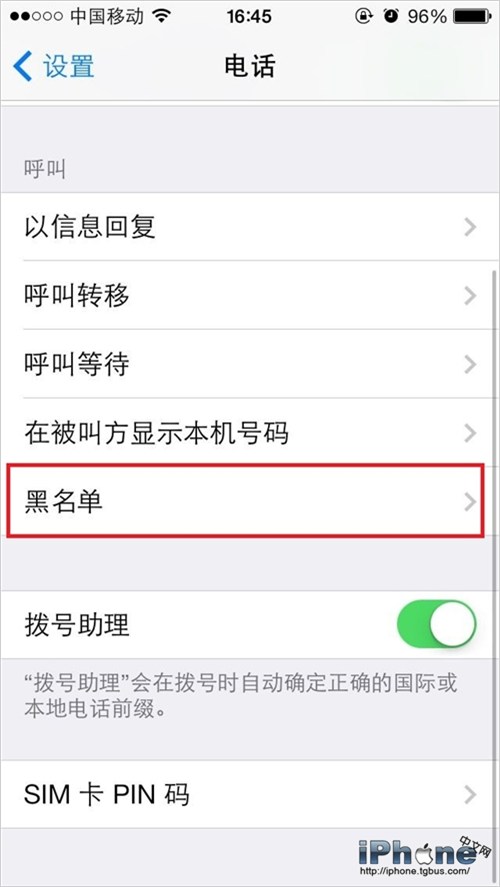 4.在設置中的“電話”、“信息”或是“Facetime”,都可以看到黑名單選項,支持添加和刪除號碼的操作。