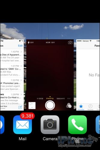 2、雙擊iPhone Home鍵可以查看最近的應用使用記錄,之後iPhone屏幕上就會出現以時間順序排列的所有已打開應用。