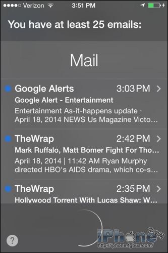 3、用戶可以對Siri說“閱讀郵件”,然後Siri就會為你讀出發件人、時間、日期以及郵件正文這些內容。如果你希望進行回復的話,Siri也可以幫助你完成這些工作。