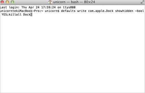 defaults write com.apple.Dock showhidden -bool YES;killall Dock