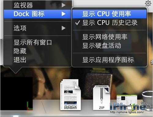 當然你也可以讓活動監視器的 Dock 圖標顯示內存、硬盤、網卡等硬件的工況,不過大多數人在意的應該是 CPU 占用率。