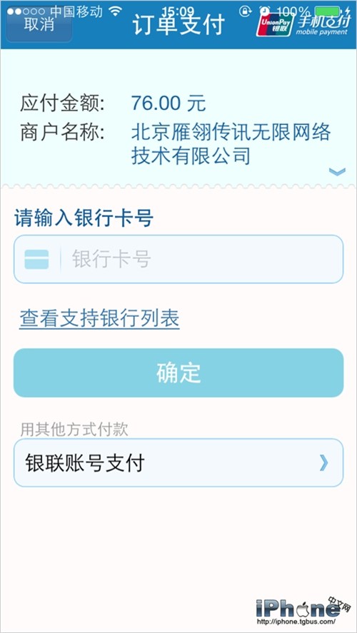 頁面會自動跳轉到支付頁面,輸入卡號後點確定就購買成功啦