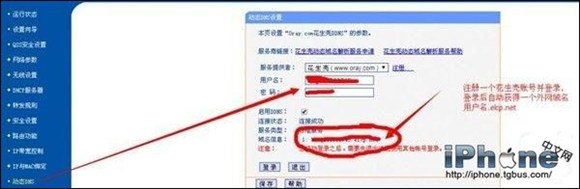 3)、設置花生殼動態dns,進去注冊一下登錄就可以。成功登錄後,要記住圈圈裡的那個域名,後面設置要用。