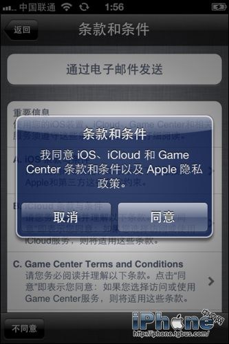 5、接下來會彈出是否同意ios、icloud及game cebter條款的框,點擊同意即可;