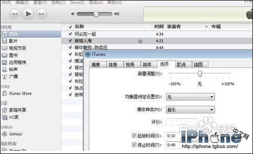4、在itunes中點擊“音樂”找一首你要設置鈴聲的歌典,然後我們擊右鍵-"顯示簡介"-選項下面填上起始時間和停止時間截取音樂的一部分作為鈴聲(作為鈴聲的音樂要在40秒之內,所以填寫時間的時候要注意)。