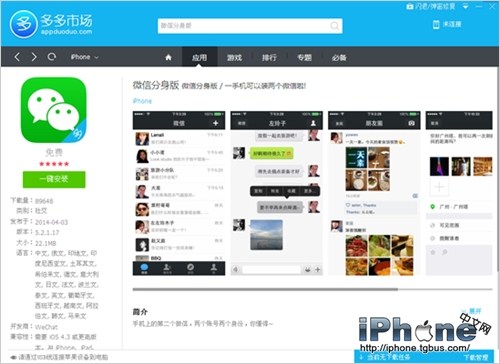 那麼就在iPhone裡安裝微信5.2分身版吧,它可以讓你在同一台手機上同時使用兩個不同賬號的微信。