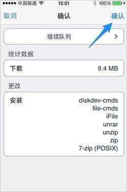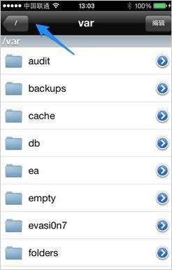 如果打開iFile以後,當前目錄不在系統的 / 根目錄下,請點擊左上角按鈕返回,直到退回到系統的根目錄下: