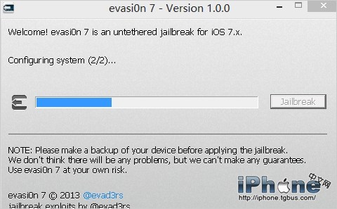 Evasi0n7 完美越獄已於幾天前發布,但還在一些地方差強人意。比如不少用戶反映他們在越獄過程中會遇到 Configuring System 2/2 的問題——在 Windows PC 上通過Evasi0n7進行越獄時,會卡在Configuring System 2/2 這一步。