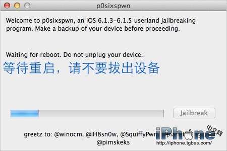越獄完成後p0sixspwn會回到准備界面,直接退出即可,並不需要再重新越獄。越獄成功!