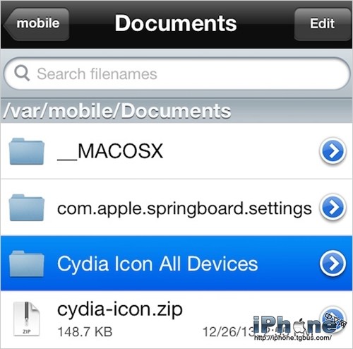 之後,點擊這裡下載圖標文件。之後用iFile將其他開,得到Cydia Icon All Devices文件夾。
