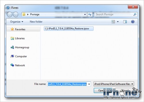 在彈出來的窗口中選擇之前下好的ipsw固件。