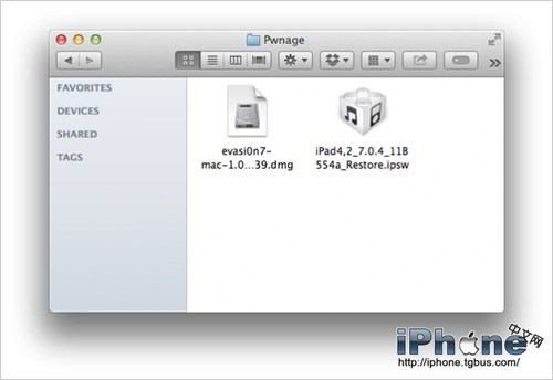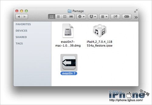 在桌面建立Pwnage文件夾,並且下載最新版的eavsi0n工具並放入文件夾內。同時我們比較推薦下載iOS7.0.4最新固件進行重新刷寫。