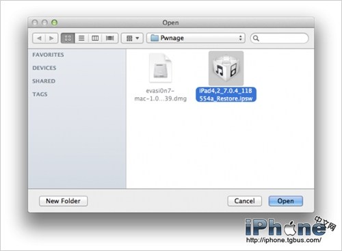 在彈出來的窗口中選擇之前下好的ipsw固件。