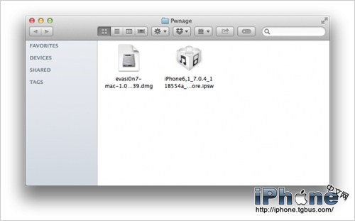 在桌面建立Pwnage文件夾,並且下載最新版的eavsi0n工具並放入文件夾內。同時我們比較推薦下載iOS7.0.4最新固件進行重新刷寫。