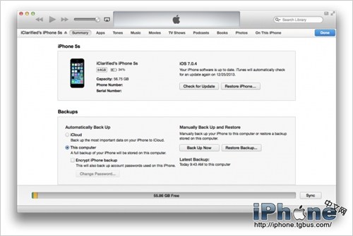 將你的iPhone設備鏈接到電腦並且手動進行備份。