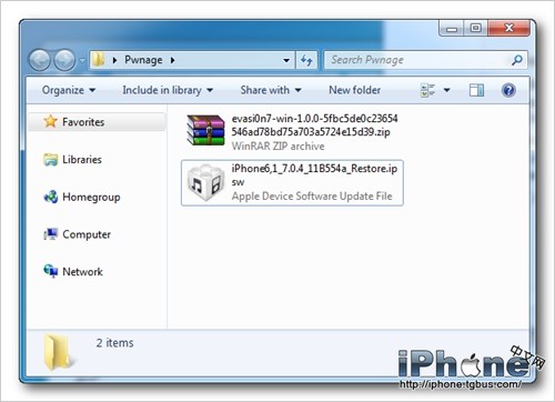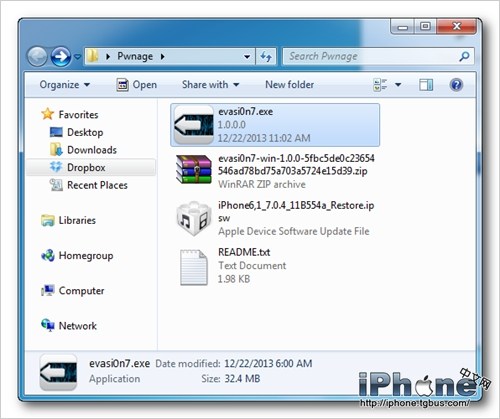 在桌面建立Pwnage文件夾,並且下載最新版的eavsi0n工具並放入文件夾內。同時我們比較推薦下載iOS7.0.4最新固件進行重新刷寫。