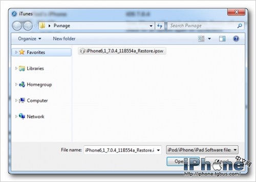 在彈出來的窗口中選擇之前下好的ipsw固件。