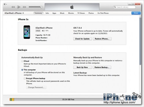 將你的iPhone設備鏈接到電腦並且手動進行備份。