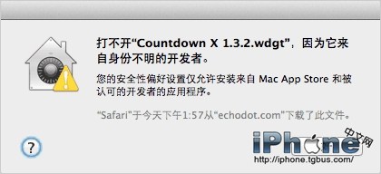最近經常會有人詢問因提示“來自身份不明開發者”而導致不能安裝某些軟件,其最主要的原因是由於蘋果在Mac OS X 10.8 Mountain Lion系統裡啟用了新的安全機制,只對Mac App Store下載的軟件和擁有開發者ID簽名的應用程序,默認信任。從此Mountain Lion系統只能安裝靠譜渠道下載的軟件或被認可的人開發的軟件,也就是必須經過蘋果審核的軟件。這當然是為了用戶安全作出的考慮,但就獨立開發者來說,沒有簽名的安全也受影響了,安裝就會彈出下圖所示警告框:“打不開 xxx,因為它來自身份不明的開發者”。如下圖所示