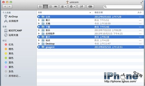 按住Command鍵並且點擊你需要選擇的文件或者項目,就可以同時選擇多個目標進行操作。
