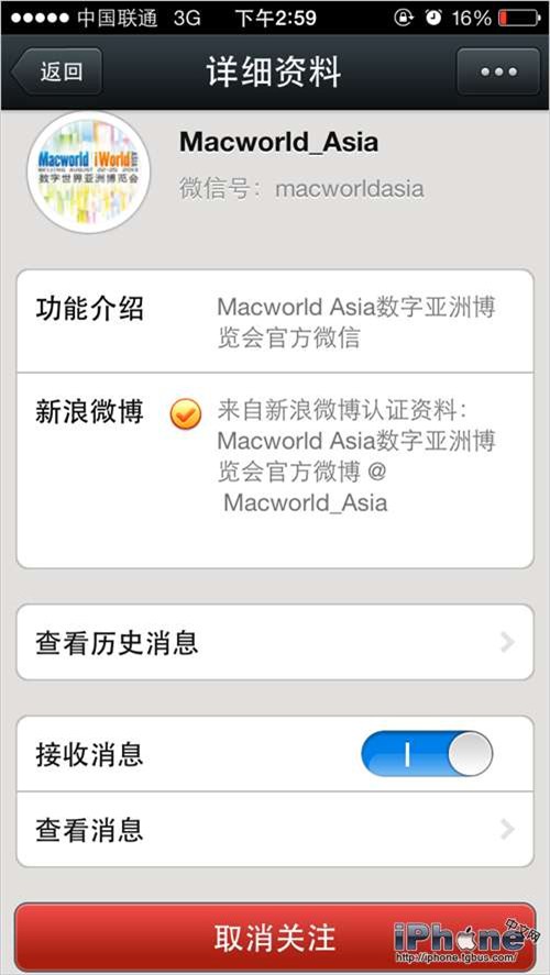 添加成功後Macworld官方微信會為你彈出這麼個框框:
