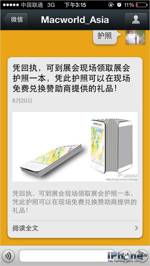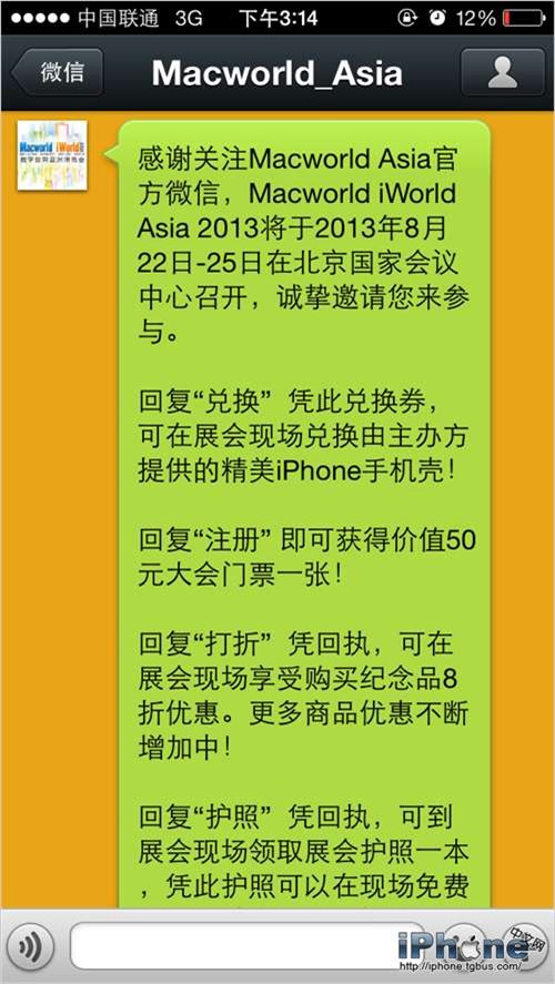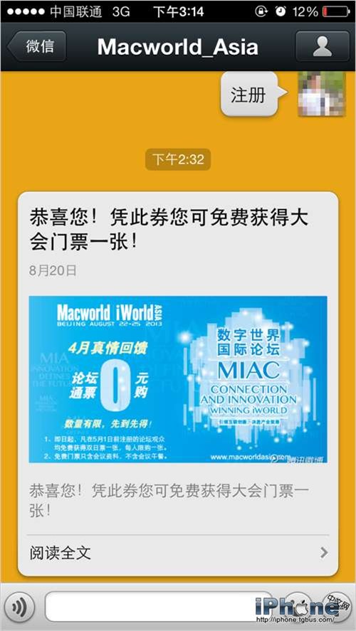 如果你回復的是“注冊”,你就有機會可以獲得Macworld展會免費門票一張: