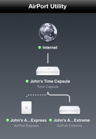 簡介:與Find My Friends一樣,這也是一款伴隨iOS5推出的應用。使用 AirPort 實用工具,用戶在 iPad、iPhone 或 iPod touch 上就可以管理 Wi-Fi 網絡和 AirPort 基站,包括AirPort Express、AirPort Extreme 和 Time Capsule。具有用圖形視圖查看Wi-Fi 網絡和設備,更改基站和網絡設置、或管理安全模式、無線頻道等高級功能。