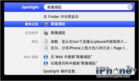 打開ImageCapture(圖像捕捉),你可以向我一樣先打開Finder,再在應用程序中一個個的看,也可以用一種簡單的方法,通過“Spotlight”來搜索。