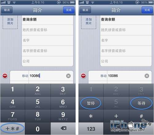 1.簡單說來就是在編輯電話號碼的界面裡,按下左下角的“+*#”這個按鍵,原本“4”和“6”的位置就會顯示為“暫停”和“等待”。