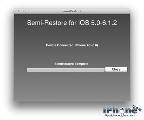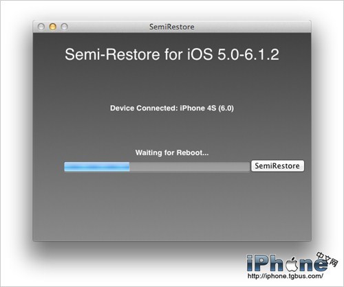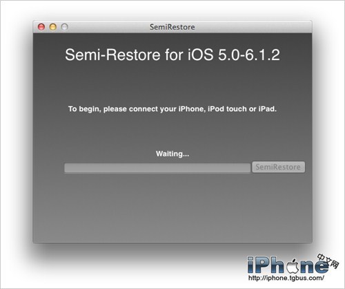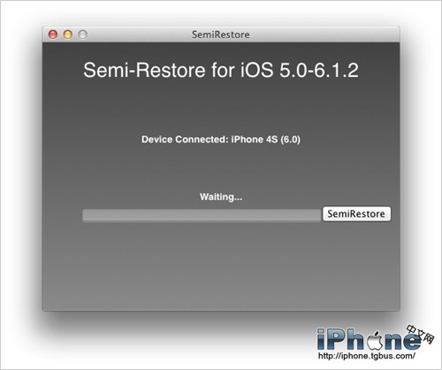 鏈接你的iOS設備(支持范圍iOS5.0-6.1.2),之後點擊Semi-Restore按鈕。