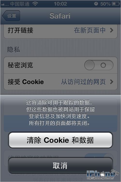 2.下面清理一下浏覽器,Safari的緩存數據也會影響iPhone使用的速度。開打“設置-Safari”點擊“清理Cookie和數據”來刪除他們。