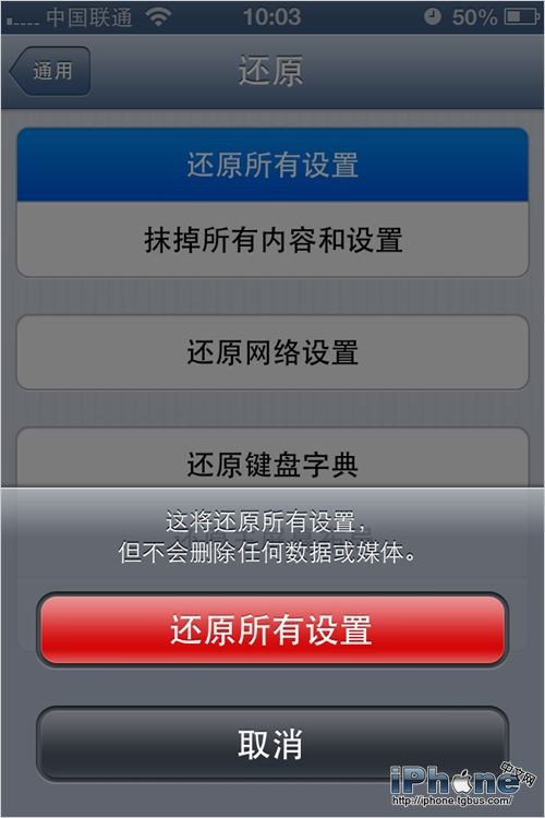 3.如果運行沒有明顯的提升,打開“設置-通用-還原”選項中的“還原所有設置”(注意不是“抹掉所有內容和設置”)。