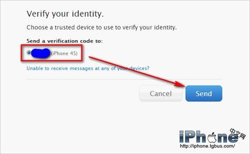 由於已開啟兩步驗證,因此登錄時會要求向受信任設備發送驗證碼。(如果你添加了多個受信任設備)選擇在身邊的受信任設備並點擊Send發送驗證碼。
