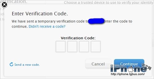 輸入受信任設備上收到的驗證碼,並點擊右下角的Continue來繼續登陸。