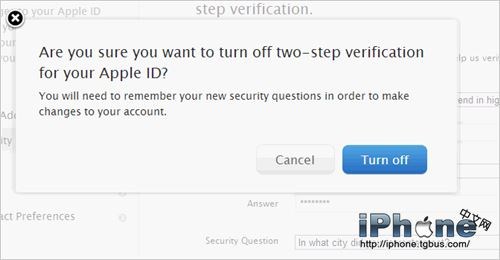 在彈出的界面中點擊Turn off來確認關閉Apple ID二次驗證。