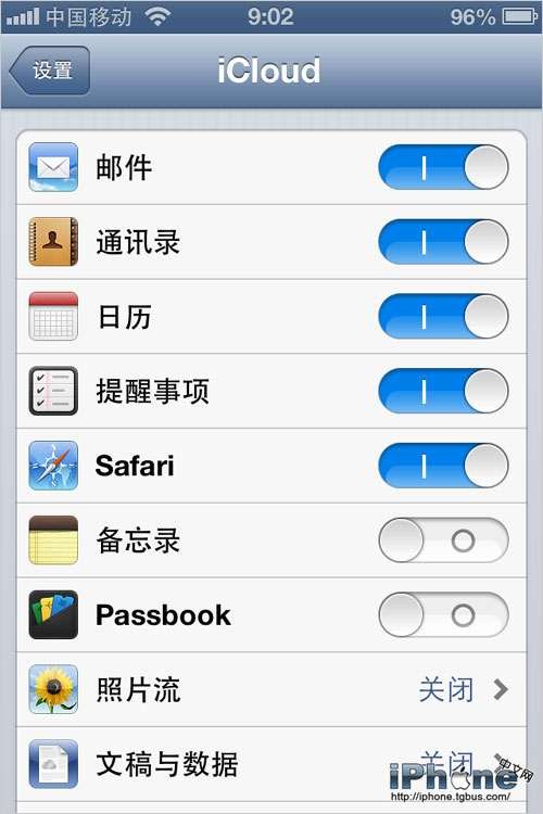 “設置”-“iCloud”,將沒用的開關都關掉,特別是“照片流”關掉,防止照片自動同步費電。