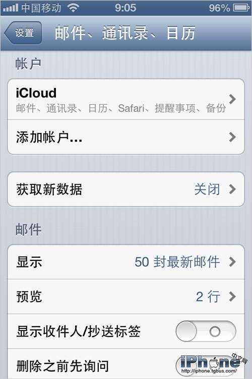 “設置”-“郵件、通訊錄、日歷”,“獲取新數據”關掉。