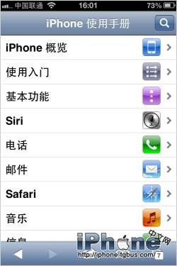 大家可以通過Safari浏覽器中的書簽找到“iPhone使用手冊”,查看該內容的時候需要聯網。