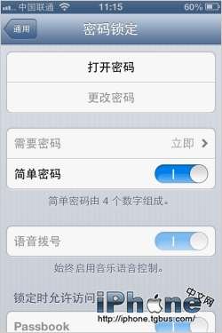同樣需要進入通用->密碼鎖定->關閉簡單密碼即可。