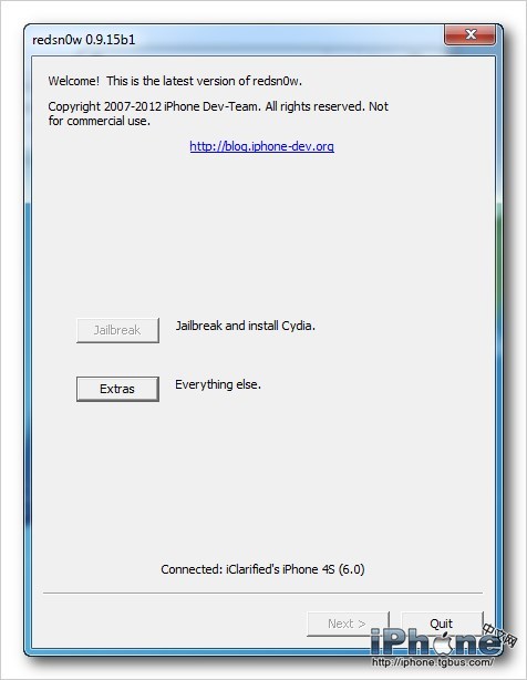 首先,我們需要下載最新版本的Redsn0w 0.9.15b1版本(下載地址)