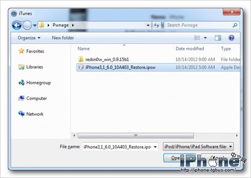 在彈出的窗口中,選擇對應的iOS6固件文件。