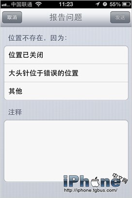 使用這一功能,還可以將自己的店鋪或家庭位置信息,發送給蘋果。如果提交的信息被蘋果認可,更新後的iOS6地圖中,就會出現你提交的位置上。