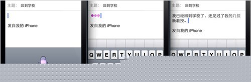現在你不用手動輸入電子郵件,只需在鍵盤上輕點麥克風圖標,開口說話即可。然後,再輕點完成,你所說的就會顯示成文字。你還可以使用聽寫功能編寫信息,做記錄,書寫新浪微博等更多內容。