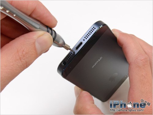 雖然之前圖片顯示,iPhone5的螺絲稍有不同,但幸運的是,其仍然是在iPhone4和iPhone4S上使用的pentalobe專用螺絲的一種,使用同樣的工具仍然能很輕松的打開。