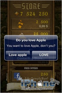 OK,如果現在在游戲中,點擊內部購買的鏈接,彈出的不再是蘋果官方的購買提示,而是如圖所示的黑客購買頁面,證明你的破解已經成功,可以點擊“LOVE”直接購買。