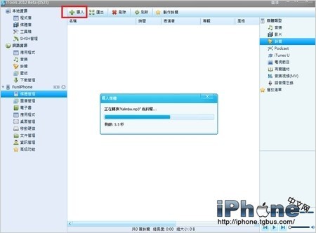 選擇“導入”,將你需要MP3或其他音頻文件導入,這時候即可將音樂當成鈴聲播放了。不過由於iPhoe只支持40秒長度的鈴聲,所以這時候只能播放你導入的音樂的前40秒。