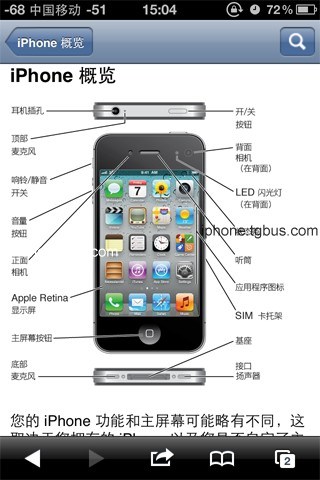 iPhone使用手冊包含iPhone最新固件的所有功能使用的詳細介紹,支持多國語言(中文簡體/繁體、阿拉伯語、英語、韓語、日語等iPhone主要發售國家常用語言),只需要用iPhone直接訪問即可獲得。