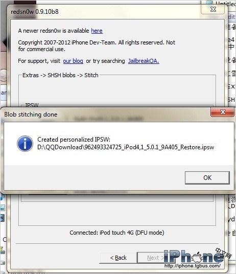 紅雪會自動生成一個自制固件在剛剛的iOS5.0.1官方固件目錄下