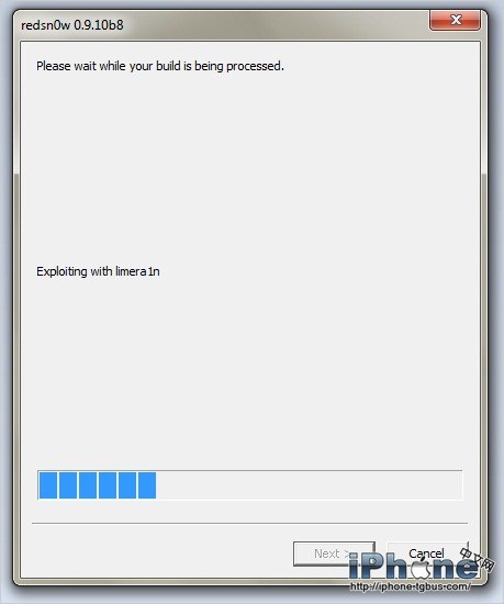 選擇紅雪剛剛生成的自制固件,iTunes將自動開始刷機。