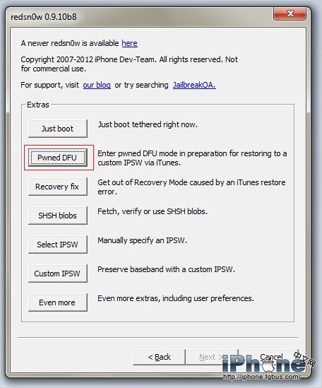 選擇Pwned DFU選項,准備開始刷機(記住剛剛連上的設備要保持在DFU模式)
